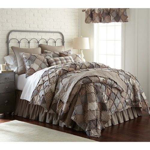 This Donna Sharp Smokey Mountain cotton quilt set has a series of soft, woven plaids crafted using dense, thick cotton for strength and durability. It has fresh neutral colors such as taupe, ivory, slate and dove grey that come together to create this instant classic look. Each fabric is pieced with a rag edge, which adds a wonderful texture to this cozy ensemble. With every wash, the edges become softer, fluffier and fabulous. This set includes 1 quilt and matching sham(s). It is pre-washed to prevent shrinking. 100% Cotton. Machine wash.