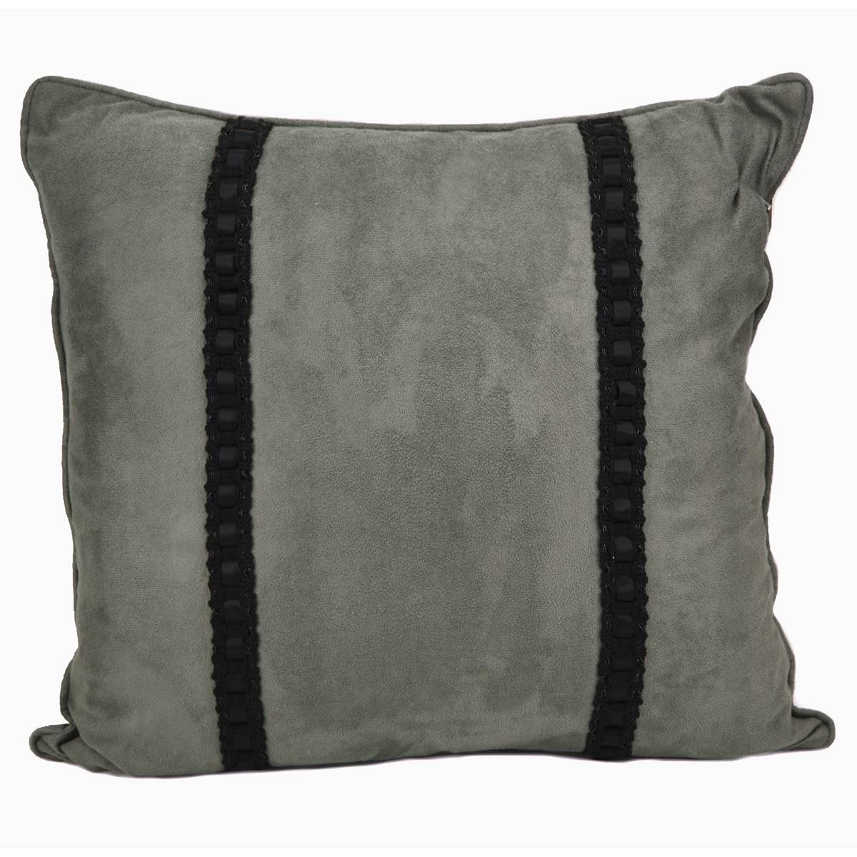 This Donna Sharp Canoe Trip decorative pillow features two black braided vertical stripes on a solid grey background. Removable zippered cover for easy cleaning.