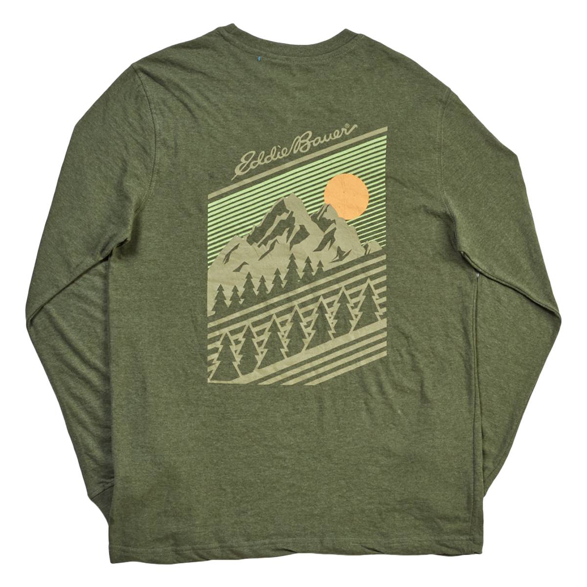 Update your casual style this season with this comfy and fun Mens Eddie Bauer long sleeve mountain graphic tee.