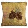 This Donna Sharp Bear Lake decorative pillow has a wonderful quilt pattern with shades of green, blue, and brown. The center panel is printed and shows a typical mountain scene with two bears wandering past a cozy cabin on a quiet lake. The bears, trees, cabin, and canoes are printed and the entire pillow has an intricate stippling quilted pattern.