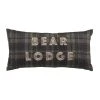 This Donna Sharp Bear Walk plaid rectangle decorative pillow is a beautiful addition to lodge and country dΓ©cor. It features a row of black bears and pine trees, surrounded by a large, rustic plaid backdrop.