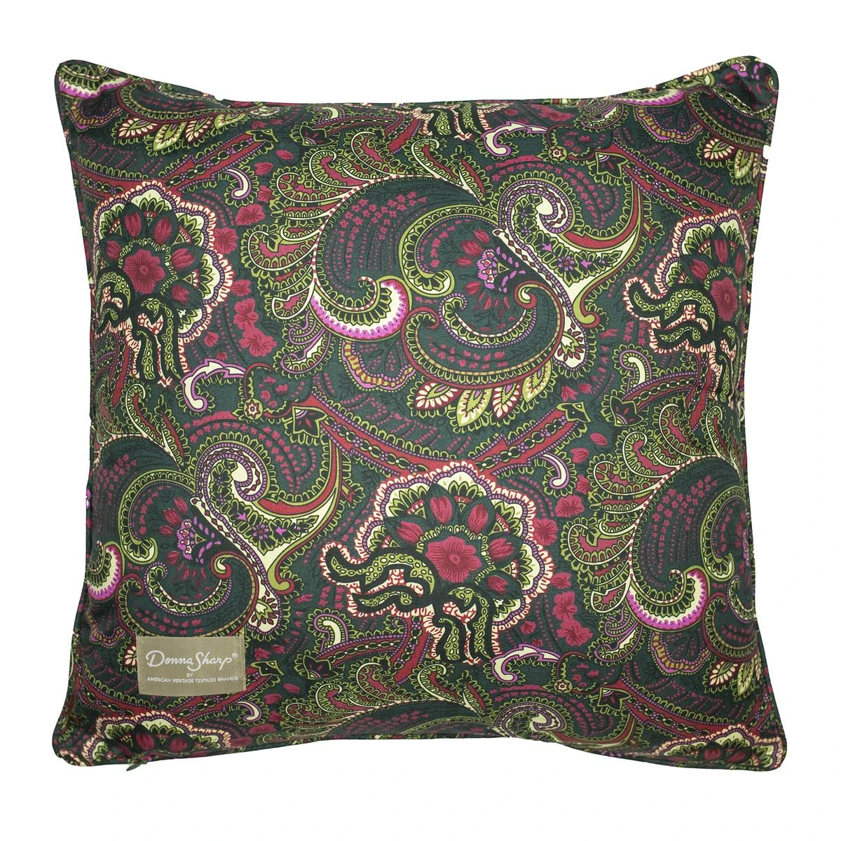 This Donna Sharp spice postage stamp decorative pillow is based on a series of vibrant, embroidered damask designs. Arranged from rich olive, forest green, warm gold, burgundy, and ivory with pops of cinnamon colors on an ivory backdrop.