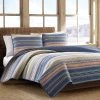 The Camano Island mini quilt set from Eddie Bauer features a rustic patchwork pattern on the face, and reverses to a striped print. 100% Cotton. Fill: 60% Cotton, 30% Polyester, 10% New Reclaimed Fibers. Machine wash. Tumble dry.