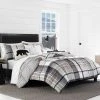 The Eddie Bauer Madrona Plaid quilt set is the perfect way to update your bedroom. Featuring tartan and windowpane plaids mixed in a multi-color block patchwork in tones of dusted indigo, scarlet, pine, and ivory. This soft cotton quilt reverses to a crisp windowpane check that also trims the edges of the quilt and shams for a clean tailored look.